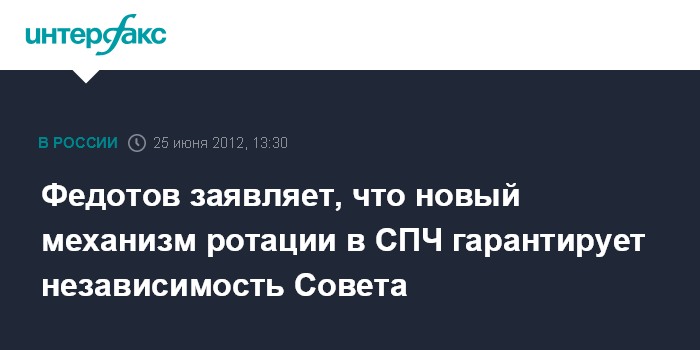 "Договорились о том, что будет выработан некий механизм ротации в составе Совета, который отражал бы новые веяния в общественной жизни, стремление к большей прозрачности и эффективности, а, с другой стороны, гарантировал бы преемственность Совета, сохранение его идентичности и независимости", - сказал Федотов.