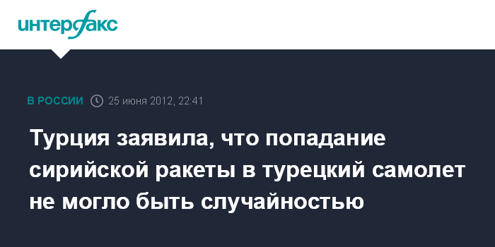 Турция заявила, что попадание сирийской ракеты в турецкий самолет не могло быть случайностью