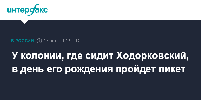 Сегежа. 26 июня. INTERFAX.RU - Администрация города Сегежа в республике Карелия, где отбывает наказание бывший глава НК "ЮКОС" Михаил Ходорковский, согласовала пикет, приуроченный ко дню его рождения.