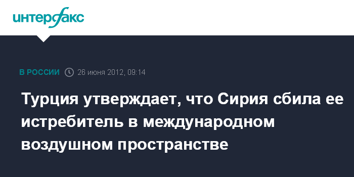 Нью-Йорк (ООН). 26 июня. INTERFAX.RU - Турция направила в СБ ООН и генеральному секретарю организации Пан Ги Муну письмо, в котором утверждается, что сбитый Сирией турецкий истребитель F-4 в момент его уничтожения находился в международном воздушном пространстве, сообщили дипломаты в ООН.