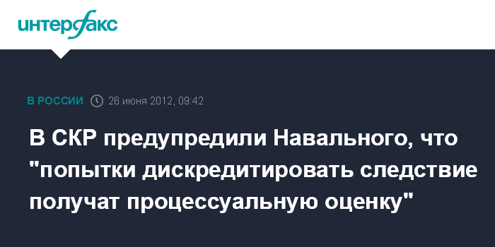 В СКР предупредили Навального, что "попытки дискредитировать следствие получат процессуальную оценку"