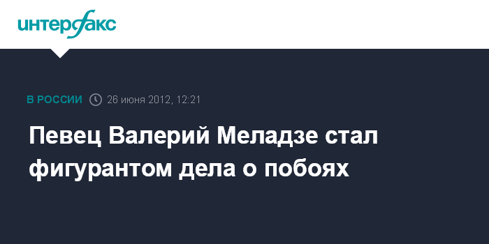 Москва. 26 июня. INTERFAX.RU - Мировой суд района Арбат возбудил уголовное дело в порядке частного обвинения в отношении певца Валерия Меладзе по заявлению журналистки "Комсомольской правды" Евгении Гусевой о побоях, сообщил "Интерфаксу" адвокат Сергей Жорин.