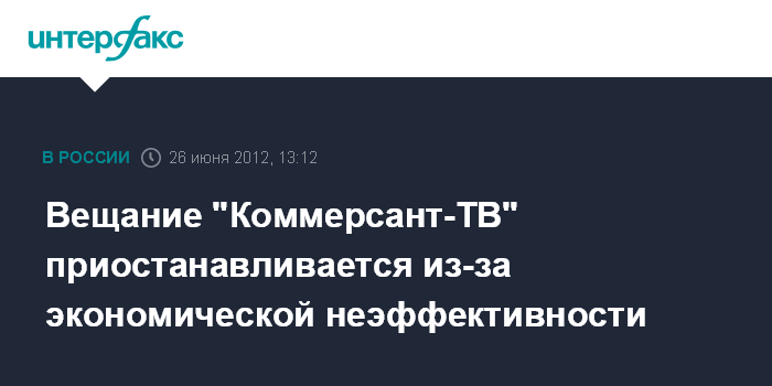 Москва. 26 июня. INTERFAX.RU - Руководство "Коммерсантъ-Холдинга" приняло решение приостановить вещание канала "Коммерсантъ-ТВ" из-за его экономической неэффективности.