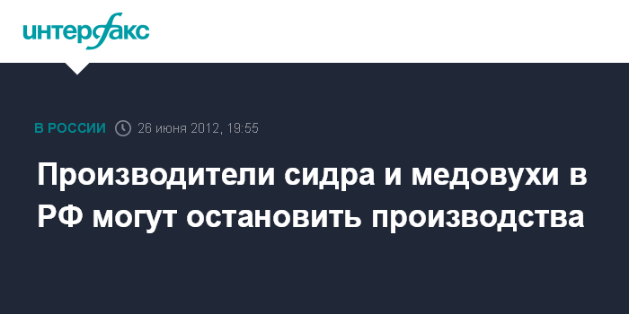 Москва. 26 июня. INTERFAX.RU - Производители русских национальных напитков брожения, в частности, медовухи и сидра, готовятся к остановке производства и увольнению работников, но все еще рассчитывают, что в оставшиеся до 1 июля дни правительство РФ включит их напитки в перечень пищевой спиртосодержащей продукции, на которую не распространяются требования закона о госрегулировании производства и оборота алкогольной продукции (171-ФЗ).