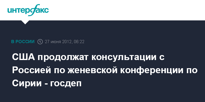 США продолжат консультации с Россией по женевской конференции по Сирии - госдеп