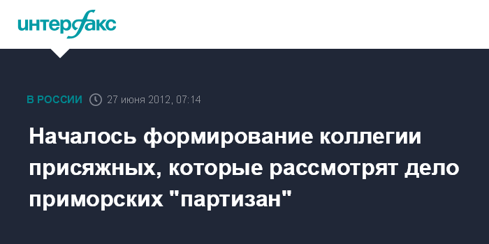 Владивосток. 27 июня. ИНТЕРФАКС-ДАЛЬНИЙ ВОСТОК - Приморский краевой суд приступил к формированию коллегии присяжных заседателей, которые рассмотрят громкое уголовное дело банды так называемых "приморских партизан".