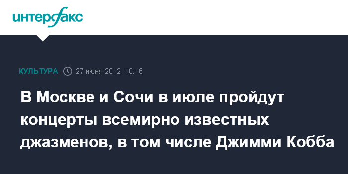 В частности, 2-4 июля в Клубе Игоря Бутмана на Чистых прудах в Москве пройдут первые в России концерты квинтета джазовой легенды Джимми Кобба. Помимо Дж.Кобба, являющегося барабанщиком, в квинтет входят трубач Джо Маньярелли (Joe Magnarelli), пианист Дэвид Хэзлтайн (David Hazeltine), контрабасист Джон Вебер (Jon Webber) и гитарист Илья Луштак.