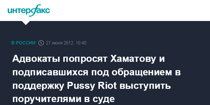 Москва. 27 июня. INTERFAX.RU - Адвокаты участниц группы Pussy Riot приветствуют письмо творческой интеллигенции РФ в защиту арестованных девушек и считают, что она поспособствовать их освобождению.