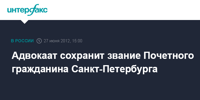 Адвокаат сохранит звание Почетного гражданина Санкт-Петербурга