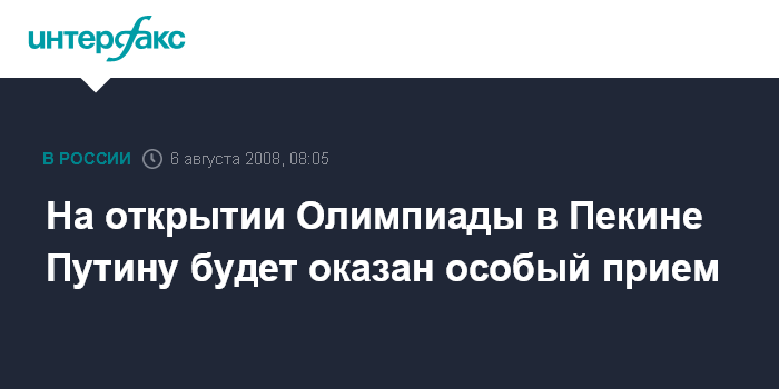 По его словам, подобный прием, помимо российского премьера, будет оказан буквально единицам приглашенных глав государств, одним из которых является президент США Джордж Буш, а другим - его казахский коллега Нурсултан Назарбаев. Двусторонняя встреча с последним в Пекине, кстати, запланирована и у Путина.