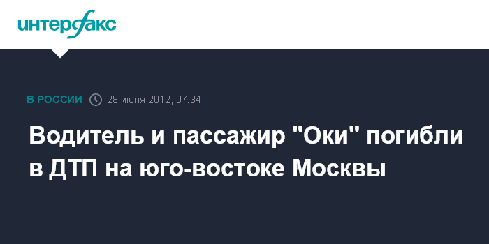 Водитель и пассажир "Оки" погибли в ДТП на юго-востоке Москвы