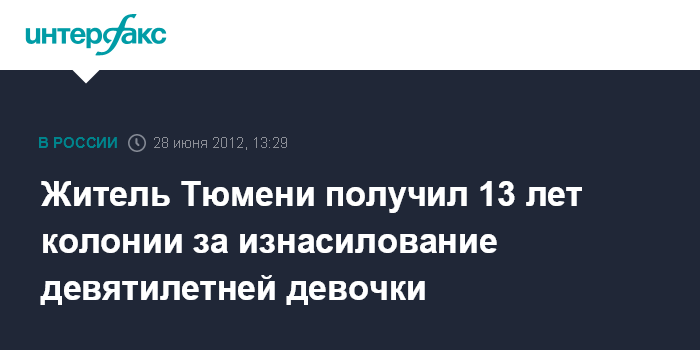 Житель Тюмени получил 13 лет колонии за изнасилование девятилетней девочки