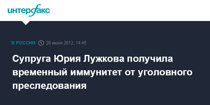 Супруга Юрия Лужкова получила временный иммунитет от уголовного преследования