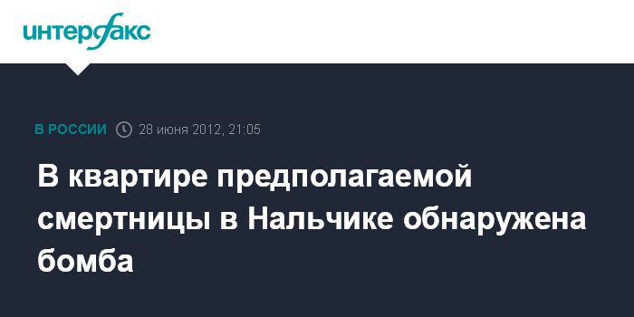 Пятигорск. 28 июня. INTERFAX.RU - В пригороде Нальчика в квартире задержанной в Грозном 19-летней предполагаемой террористки-смертницы взрывотехники разминируют взрывное устройство, сообщает ГУ МВД России по СКФО.