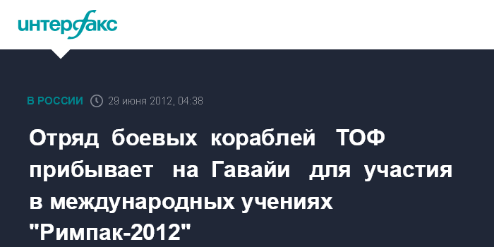 Отряд боевых кораблей ТОФ прибывает на Гавайи для участия в международных учениях "Римпак-2012"