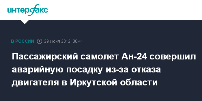 Пассажирский самолет Ан-24 совершил аварийную посадку из-за отказа двигателя в Иркутской области