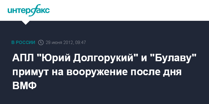 АПЛ "Юрий Долгорукий" и "Булаву" примут на вооружение после дня ВМФ