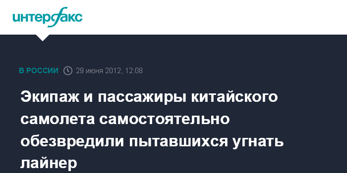 Экипаж и пассажиры китайского самолета самостоятельно обезвредили пытавшихся угнать лайнер