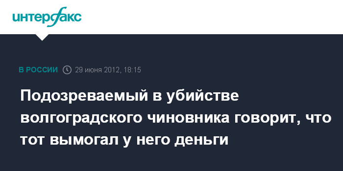 Москва. 29 июня. INTERFAX.RU - Асламбек Вагапов, который явился в полицию с повинной и признался в убийстве главы Светлоярского района Волгоградской области Николая Крутова, заявил, что причиной преступления стало регулярное вымогательство у него денег со стороны чиновника, сообщил официальный представитель СК РФ Владимир Маркин.