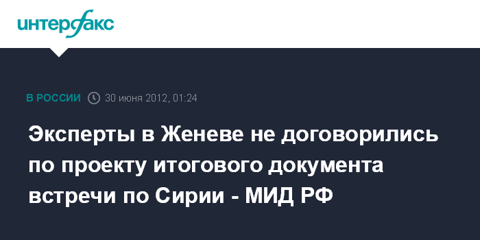"В Женеве экспертам не удалось договориться по проекту итогового документа министерской встречи по Сирии. Проблема в системном подходе", - написал Г.Гатилов в ночь на субботу в своем микроблоге в Твиттере.