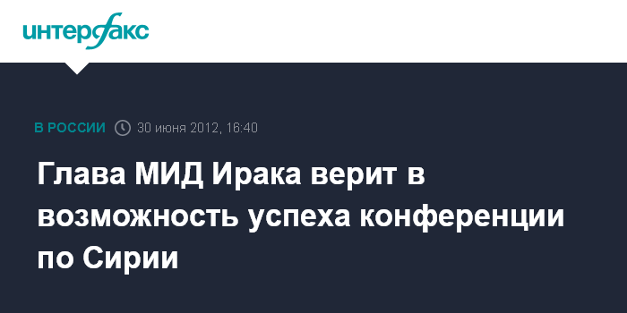 Женева. 30 июня. INTERFAX.RU - Глава МИД Ирака Хошияр Зибари рассчитывает, что на проходящей в Женеве международной встрече по Сирии будет достигнут прогресс. "Да", - сказал он журналистам, отвечая на вопрос, возможно ли на этой встрече продвинуться вперед по решению сирийской проблемы.