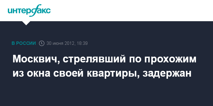 Москва. 30 июня. INTERFAX.RU - В Москве задержан мужчина, стрелявший из окна своей квартиры по прохожим.