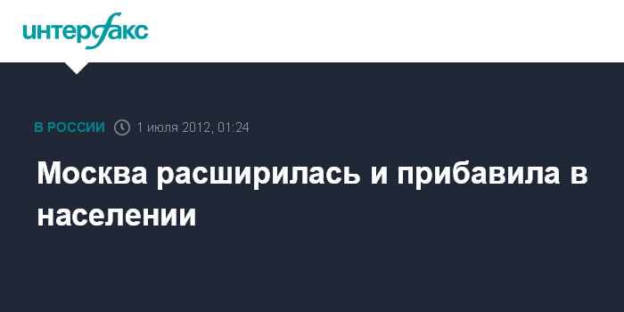 Москва. 1 июля. ИНТЕРФАКС-МОСКВА - С 1 июля за счет присоединения к Москве 148 тыс. га земель Московской области площадь столицы увеличилась в 2,4 раза и теперь составляет около 255 тыс. га, москвичами стали 232 тыс. человек, проживающих на этой территории.