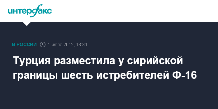 Стамбул. 1 июля. INTERFAX.RU - Шесть турецких истребителей Ф-16 стянуты к границам Сирии, сообщило в воскресенье командование вооруженными силами Турции. Согласно данным командования, эта мера вызвана тремя недавними случаями приближения сирийских вертолетов к границе с Турцией. Командование в то же время отмечает, что вертолеты границу не нарушили. В пятницу Турция объявила о размещении пусковых ракетных комплексов и зениток вдоль границы с Сирией.