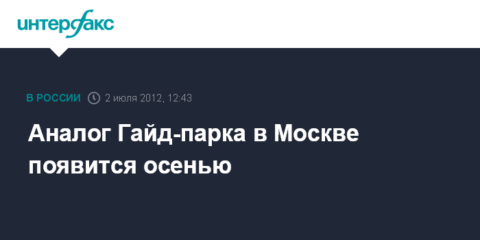 Москва. 2 июля. INTERFAX.RU - Аналог лондонского Гайд-парка, где можно будет проводить политические акции, появится в Москве уже осенью, сообщил "Интерфаксу" в понедельник глава департамента региональной безопасности столицы Алексей Майоров.