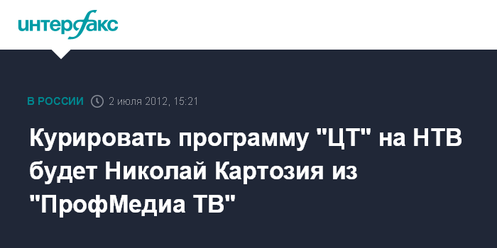 Курировать программу "ЦТ" на НТВ будет Николай Картозия из "ПрофМедиа ТВ"