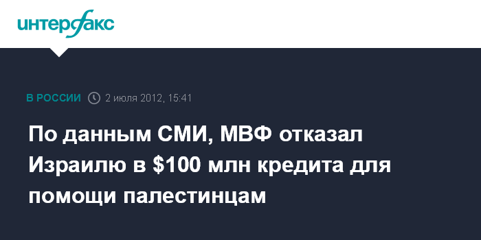 По данным СМИ, МВФ отказал Израилю в $100 млн кредита для помощи палестинцам
