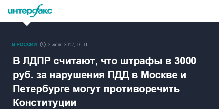 В ЛДПР считают, что штрафы в 3000 руб. за нарушения ПДД в Москве и Петербурге могут противоречить Конституции