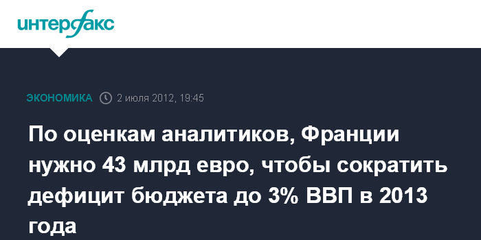 По оценкам аналитиков, Франции нужно 43 млрд евро, чтобы сократить дефицит бюджета до 3% ВВП в 2013 года