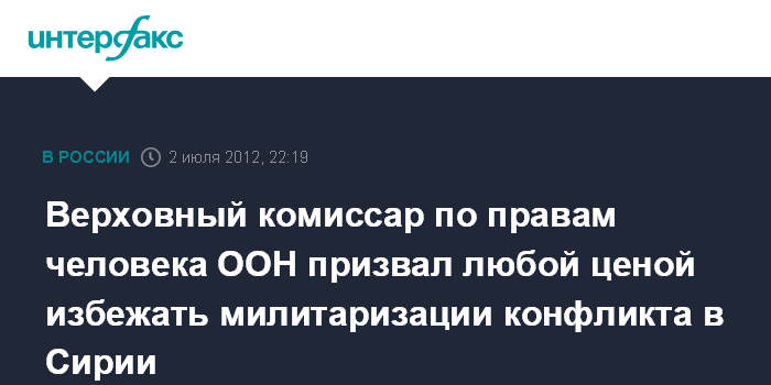 Нью-Йорк (ООН). 2 июля. INTERFAX.RU - Страны-члены Совета Безопасности ООН должны принять все возможные меры, которые позволят избежать еще большей милитаризации конфликта в Сирии, сообщила в понедельник журналистам верховный комиссар по правам человека ООН Наванетем Пиллай.