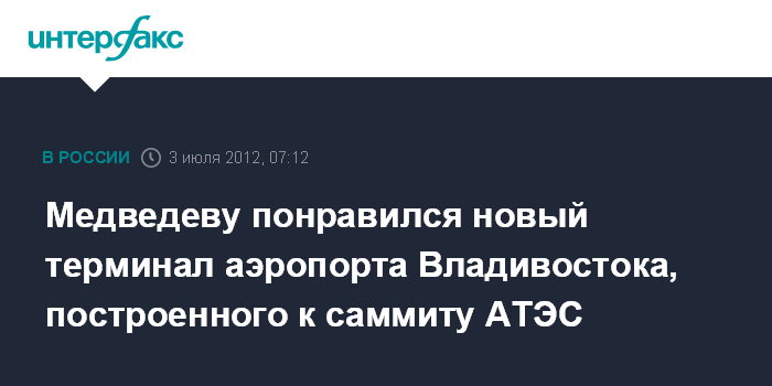 Владивосток. 3 июля. ИНТЕРФАКС-ДАЛЬНИЙ ВОСТОК - Премьер-министр России Дмитрий Медведев осмотрел новый терминал аэропорта во Владивостоке, который был построен к саммиту АТЭС-2012.