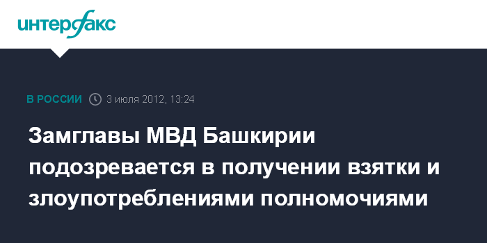 Замглавы МВД Башкирии подозревается в получении взятки и злоупотреблениями полномочиями