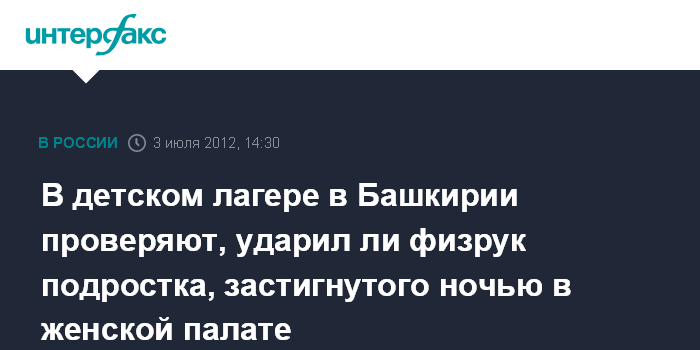 В детском лагере в Башкирии проверяют, ударил ли физрук подростка, застигнутого ночью в женской палате