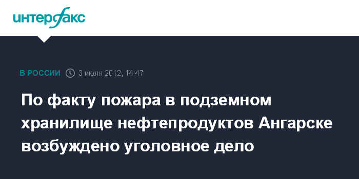 По факту пожара в подземном хранилище нефтепродуктов Ангарске возбуждено уголовное дело