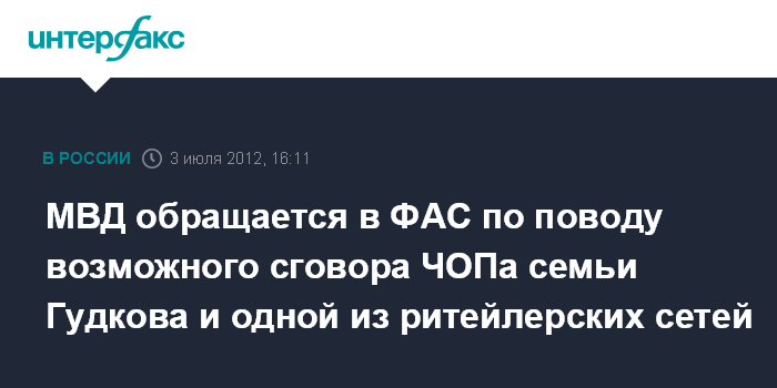 МВД обращается в ФАС по поводу возможного сговора ЧОПа семьи Гудкова и одной из ритейлерских сетей
