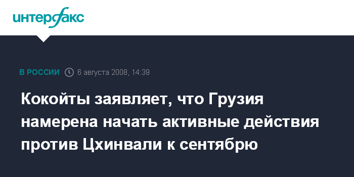 Кокойты заявляет, что Грузия намерена начать активные действия против Цхинвали к сентябрю