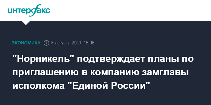 "Норникель" подтверждает планы по приглашению в компанию замглавы исполкома "Единой России"