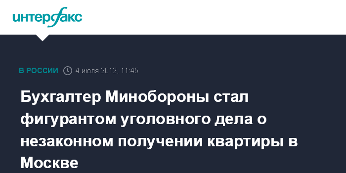 Бухгалтер Минобороны стал фигурантом уголовного дела о незаконном получении квартиры в Москве