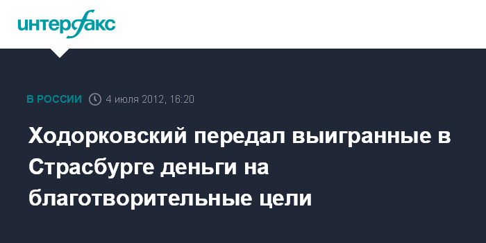 Москва. 4 июля. INTERFAX.RU - Экс-глава "ЮКОСа" Михаил Ходорковский передал выигранные в страсбургском суде деньги ряду общественных организаций, в том числе благотворительному фонду Чулпан Хаматовой и возглавляемой оппозиционной журналисткой Ольгой Романовой организации "Русь Сидящая".