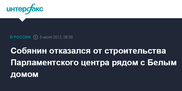 Собянин отказался от строительства Парламентского центра рядом с Белым домом