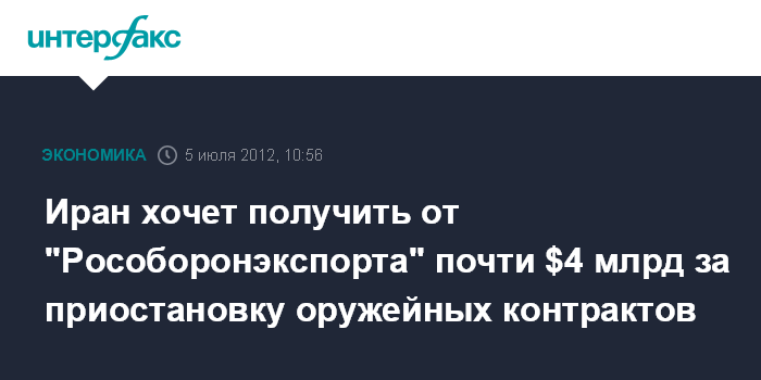 Иран хочет получить от "Рособоронэкспорта" почти $4 млрд за приостановку оружейных контрактов