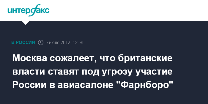 Москва сожалеет, что британские власти ставят под угрозу участие России в авиасалоне "Фарнборо"