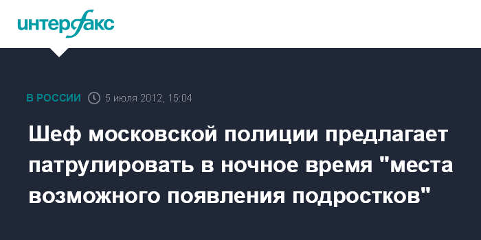 Шеф московской полиции предлагает патрулировать в ночное время "места возможного появления подростков"