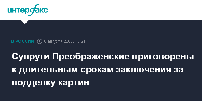 Супруги Преображенские приговорены к длительным срокам заключения за подделку картин