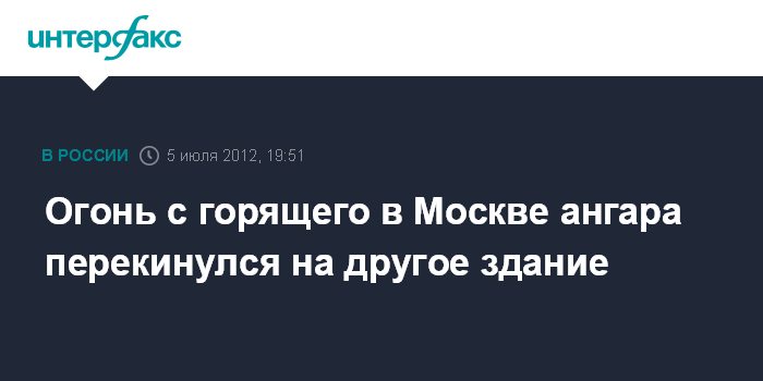 Огонь с горящего в Москве ангара перекинулся на другое здание