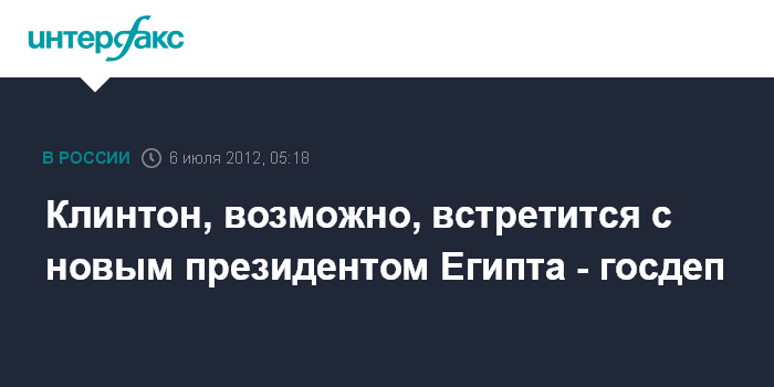 "Мы можем предполагать, что такая встреча с избранным и принявшим присягу президентом страны (Египта - ИФ) состоится во время пребывания госсекретаря (в Египте - ИФ)", - сказал дипломат на брифинге.